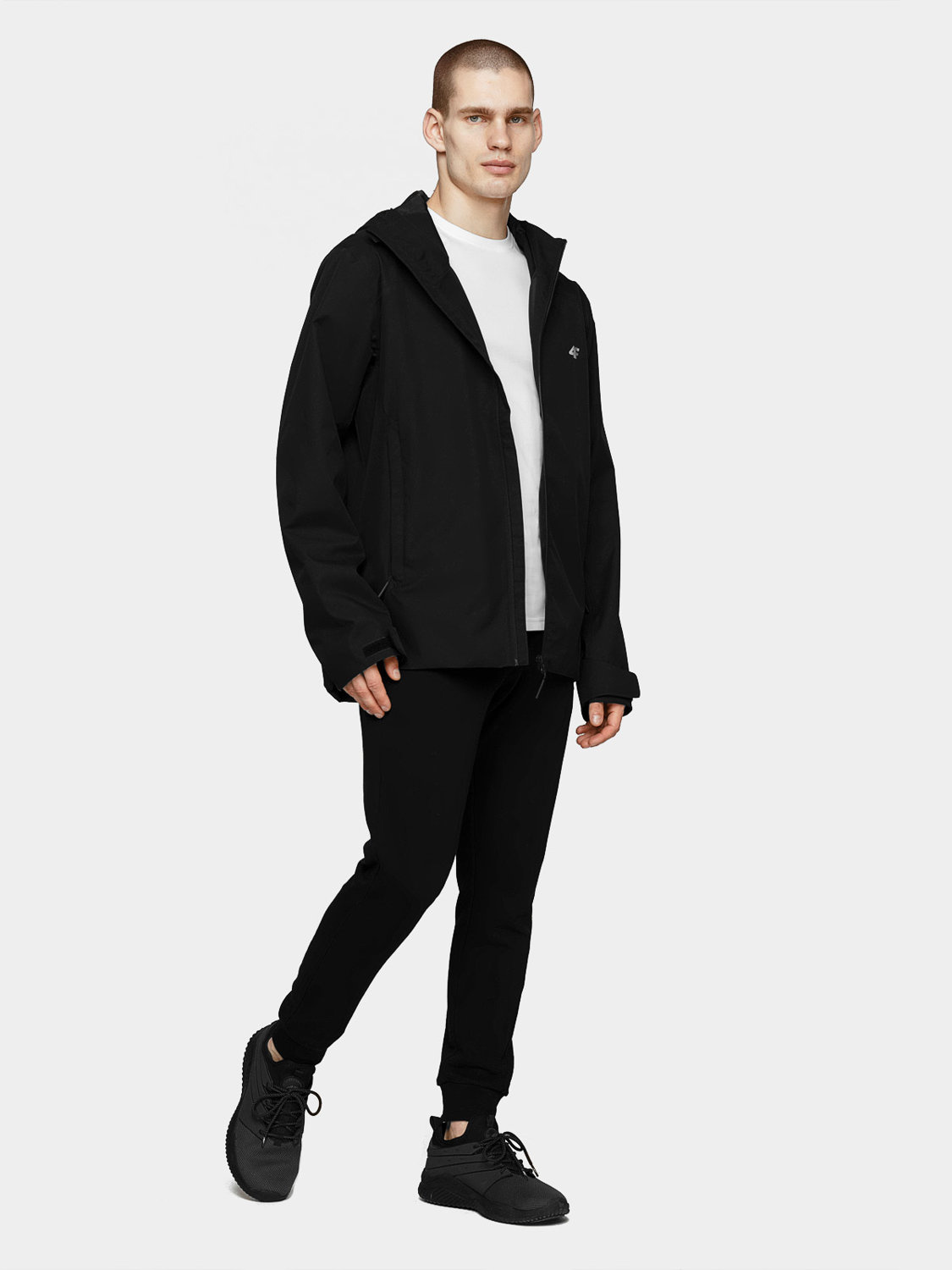 Nieocieplana kurtka męska z kapturem marki 4F H4L21-KUM002-20S w kolorze czarnym. Kurtka męska świetnie sprawdzi się podczas codziennego użytkowania oraz aktywności fizycznych w okresie przejściowym. Męska kurtka zapewni optymalną ochronę przed niewielkimi opadami deszczu. Kurtka wyposażona w membranę NeoDry 5 000 oraz hydrofobową impregnację materiału zapewniające zapewnia jej wodoodporność, wiatroszczelność oraz oddychalność. Podszewka została wykonana z przewiewnej siateczki gwarantując cyrkulację powietrza. Kurtka sportowa posiada dwie boczne kieszenie zewnętrzne zapinane na zamek, które ochronią dłonie przed zimnem oraz jedną kieszeń wewnętrzna z zapięciem na rzep, idealną do przechowywania telefonu.
