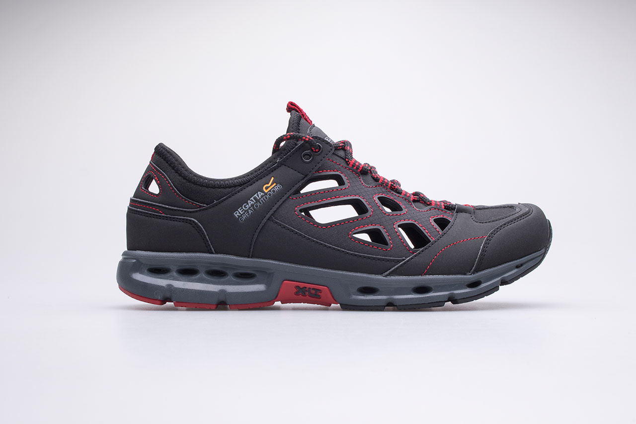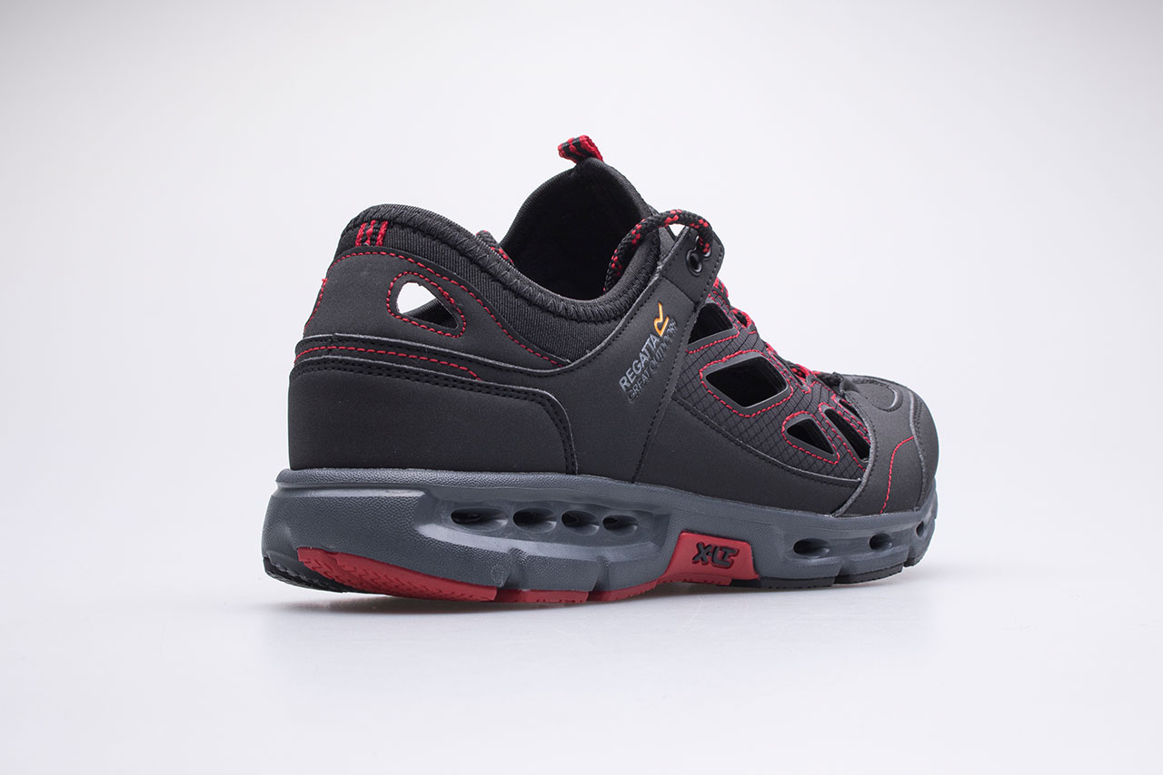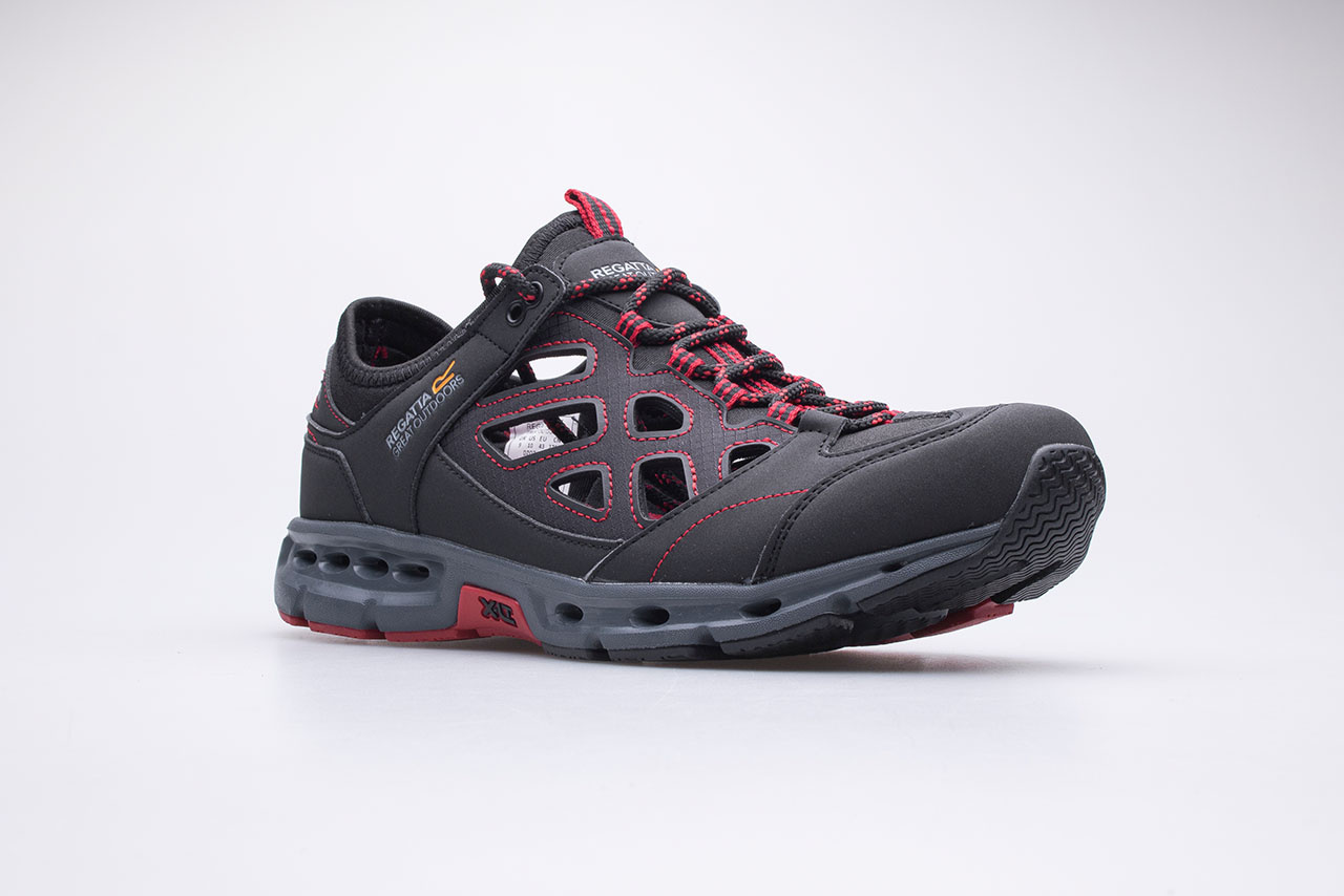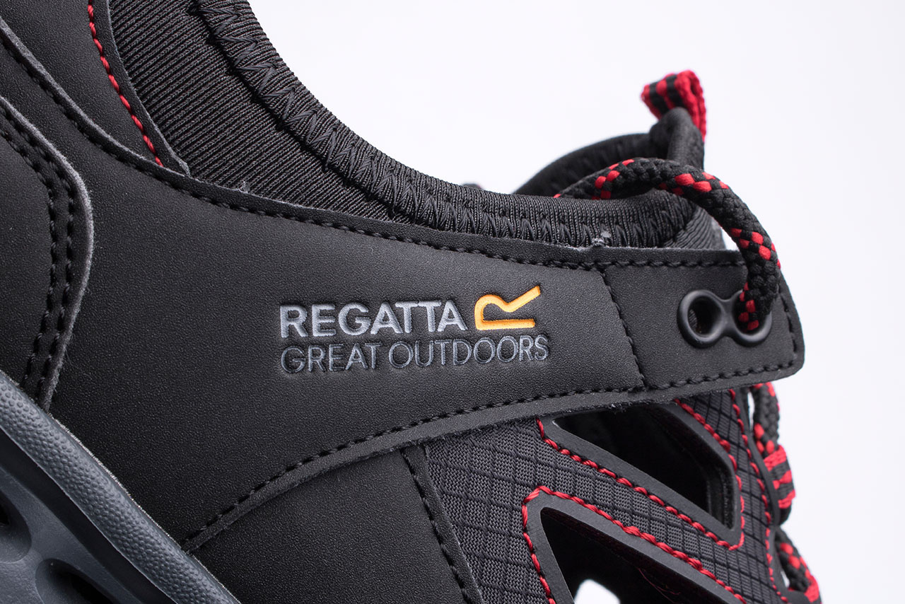 Sandały męskie marki Regatta model Crosstrek. Cholewka z szybkoschnącej i oddającej siatki open-cell oraz PU (poliuretanu).