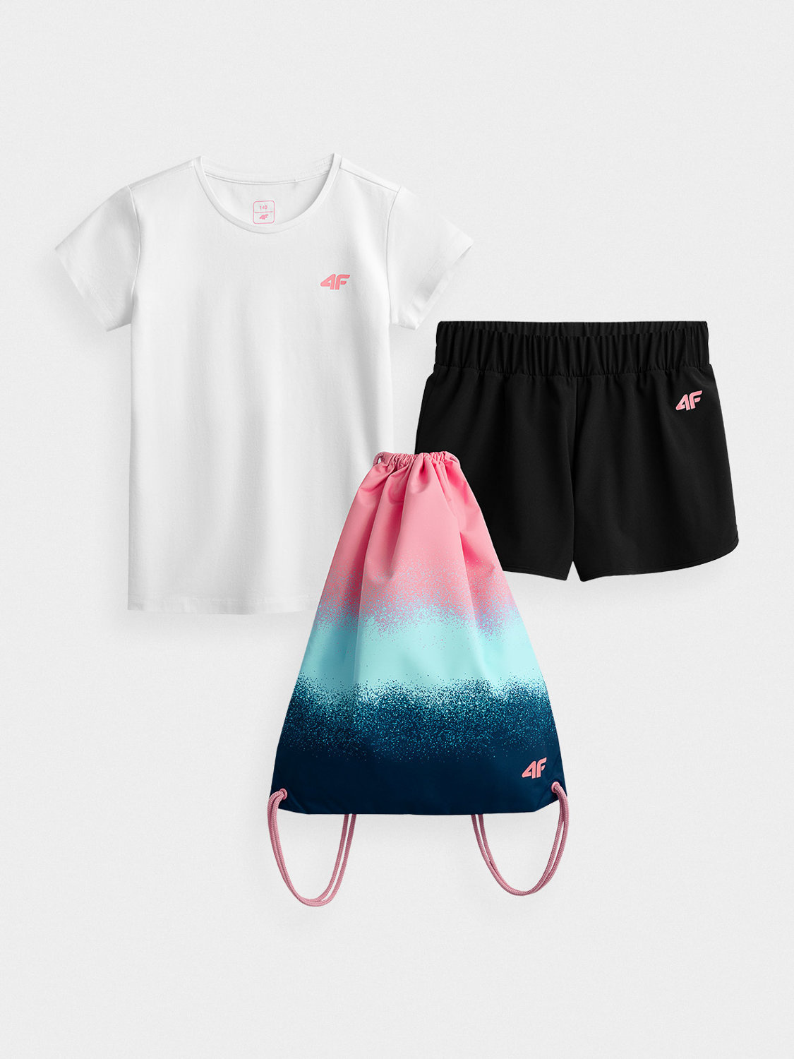 - Bardzo wygodny zestaw dziecięcy: koszulka + spodenki + worek marki 4F.