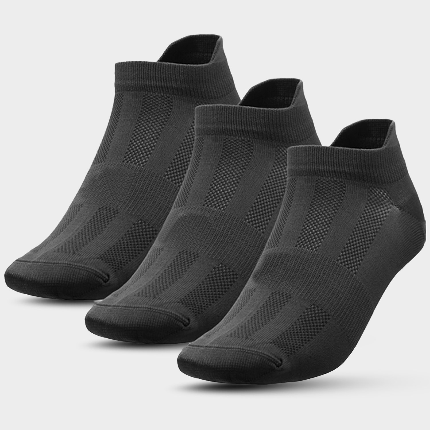 Skarpety męskie 4F w trzech wariantach kolorystycznych. W opakowaniu znajdują się trzy pary, po jednej z każdego koloru. Skarpety zapewniają stopom odpowiednią wentylację i komfort podczas noszenia. Skarpety 4F dzięki ściągaczom idealnie przylegają do stopy co zapobiega zsuwaniu się skarpet w trakcie chodzenia.