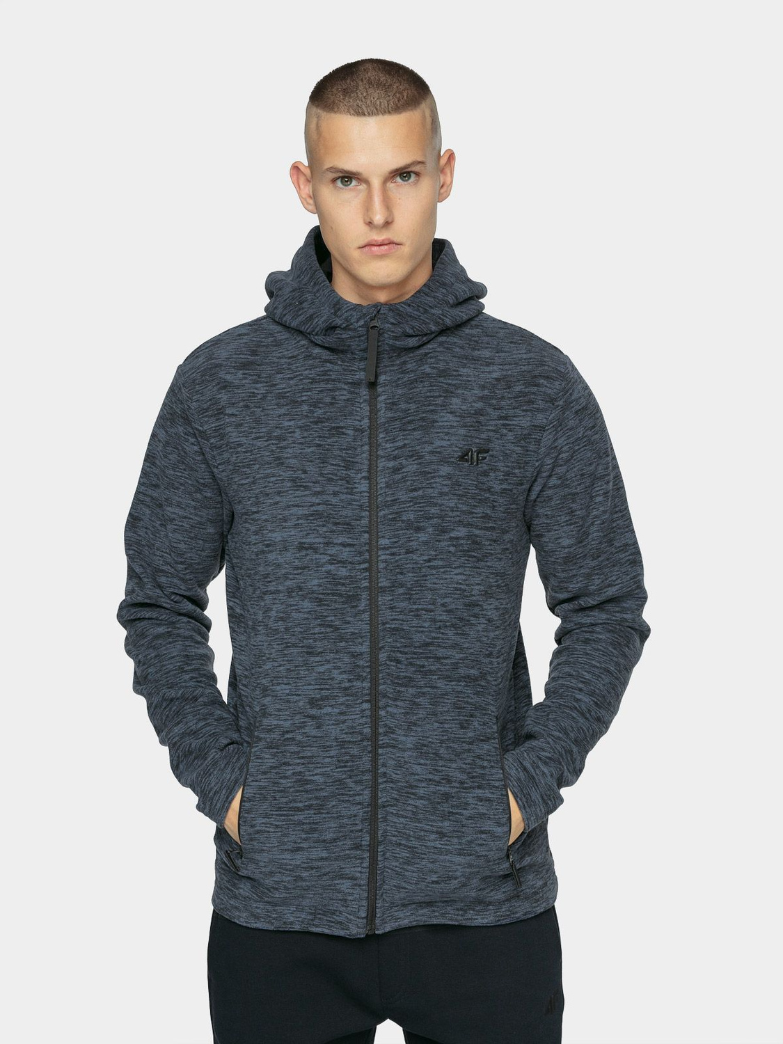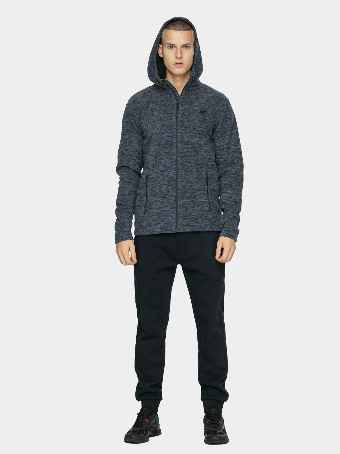 Męski polar rozpinany, trzyczęściowy. Posiada wewnętrzną warstwę z mikropolaru. W połączeniu z wygodnym, zintegrowanym kapturem idealnie sprawdzi się w chłodniejsze wieczory. Polar posiada technologię 4FWarm, dzięki której skutecznie trzyma ciepło. Zamek błyskawiczny na całej długości zapewni komfort użytkowania dzięki wszytej na całości miękkiej patki, która zapewni ochronę podbródka. Polar posiada dwie kieszenie boczne. Nadaje się do użytkowania codziennego, jak i do aktywności fizycznej.