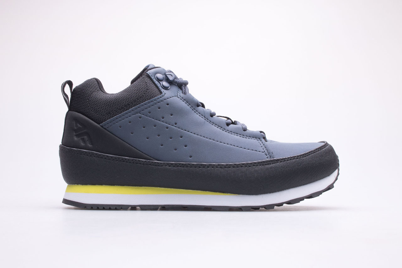 Buty dziecięce typu urban hiker marki 4F. Całość cholewki została wykonana z naturalnej skóry nubukowej. Dodatkowe wzmocnienie z PVC zwiększa odporność na uszkodzenia. Dzięki gumowej, delikatnie profilowanej podeszwie z lekkim bieżnikiem, buty zapewniają przyczepność do podłoża oraz amortyzację i stabilność kroku. Dodatkowo środkowa podeszwa została wykonana z wysokiej jakości paniki, daje to wygodę i komfort podczas codziennego użytkowania buta. Sznurowanie umożliwia indywidualne dopasowanie do stopy. Ponadczasowy fason sprawia, że buty będą idealnie pasować do większości ubiorów. Stonowana kolorystyka butów sprawia, że wpasują się do stylizacji sportowych, a nawet codziennych. Sprawdzą się świetnie podczas codziennych wędrówek miejskich.