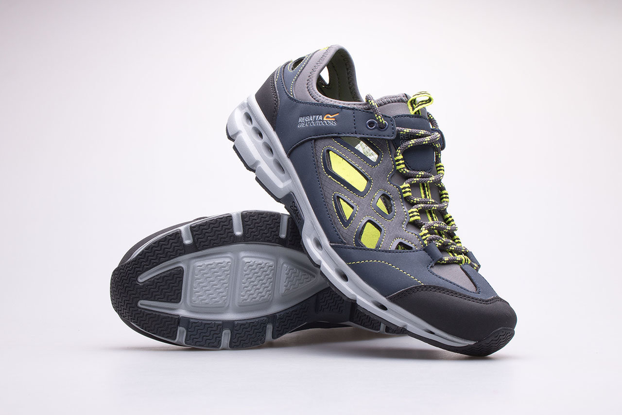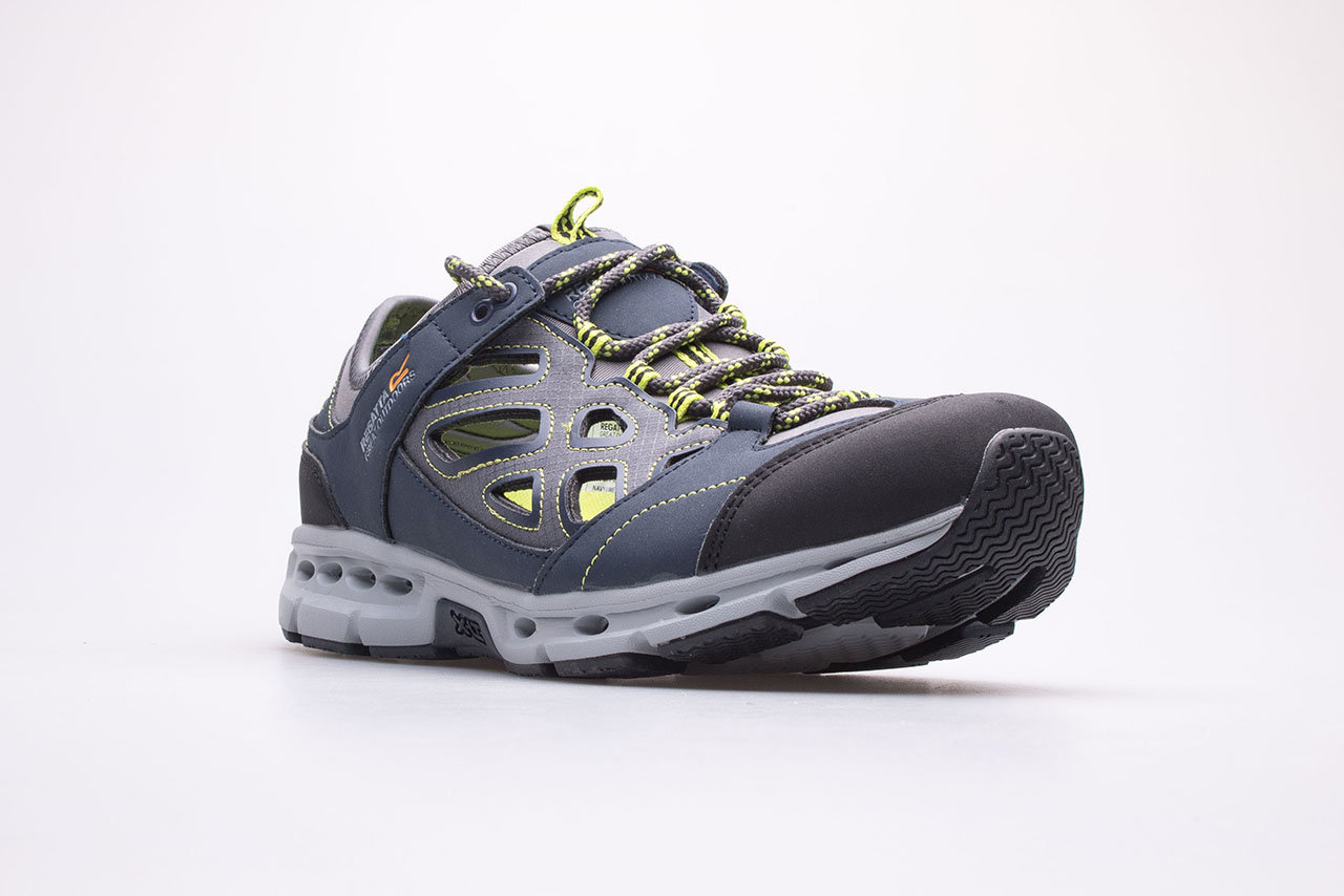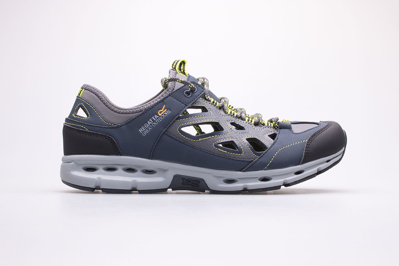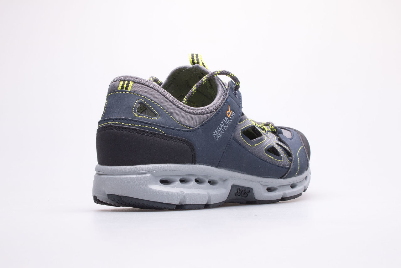 Sandały outdoorowe dla mężczyzn marki Regatta. Obuwie męskie doskonałe na spacery w gorące, letnie dni. Cholewa wykonana z oddychających materiałów bezpiecznych dla stopy. Otwory wentylacyjne w cholewce zapewniają optymalną cyrkulację powietrza, dzięki czemu stopy się nie pocą. Elastyczna i przyjemna w dotyku pianka EVA została wykorzystana we wkładce wewnętrznej, co znacząco zwiększa komfort podczas długich spacerów. Lekka konstrukcja z kanalikami odprowadzającymi nadmiar wody, doskonale sprawdzi się zarówno w środowisku miejskim jaki i w terenie np. podczas wycieczek górskich.