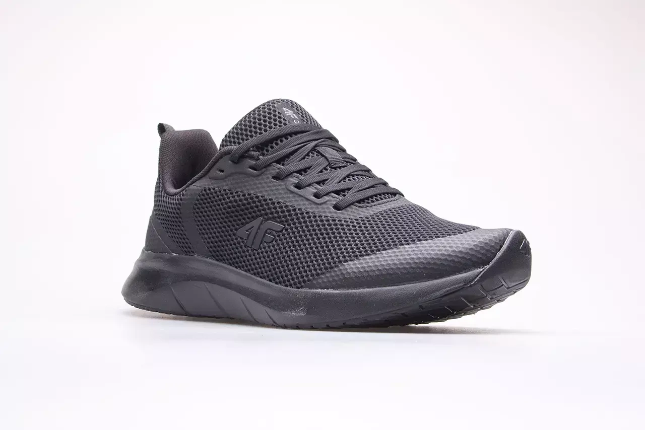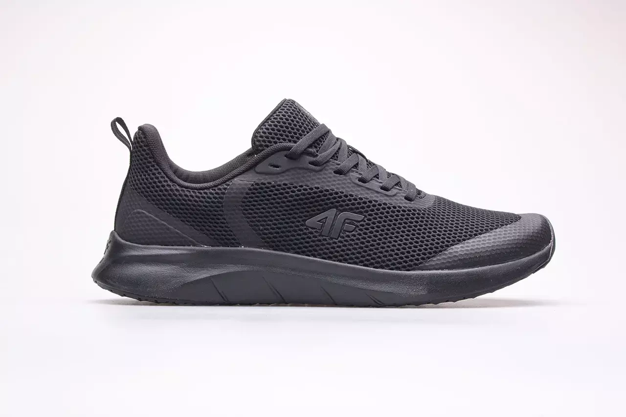 Męskie buty sportowe marki 4F. Buty miejskie o sportowym designie z przewiewnej siatki sprawdzą się idealnie w ciepłe letnie dni. Niska, sznurowana cholewka o sportowym charakterze i czarnej kolorystyce sprawdzi się w każdej stylizacji. Wstawki z materiału syntetycznego wzmacniają konstrukcję buta a miękka wyściółka EVA gwarantuje wysoki poziom wygody. Podeszwa wykonana w technologii CM EVA zapewnia dobrą przyczepność oraz zwiększa odporność na ścieranie.